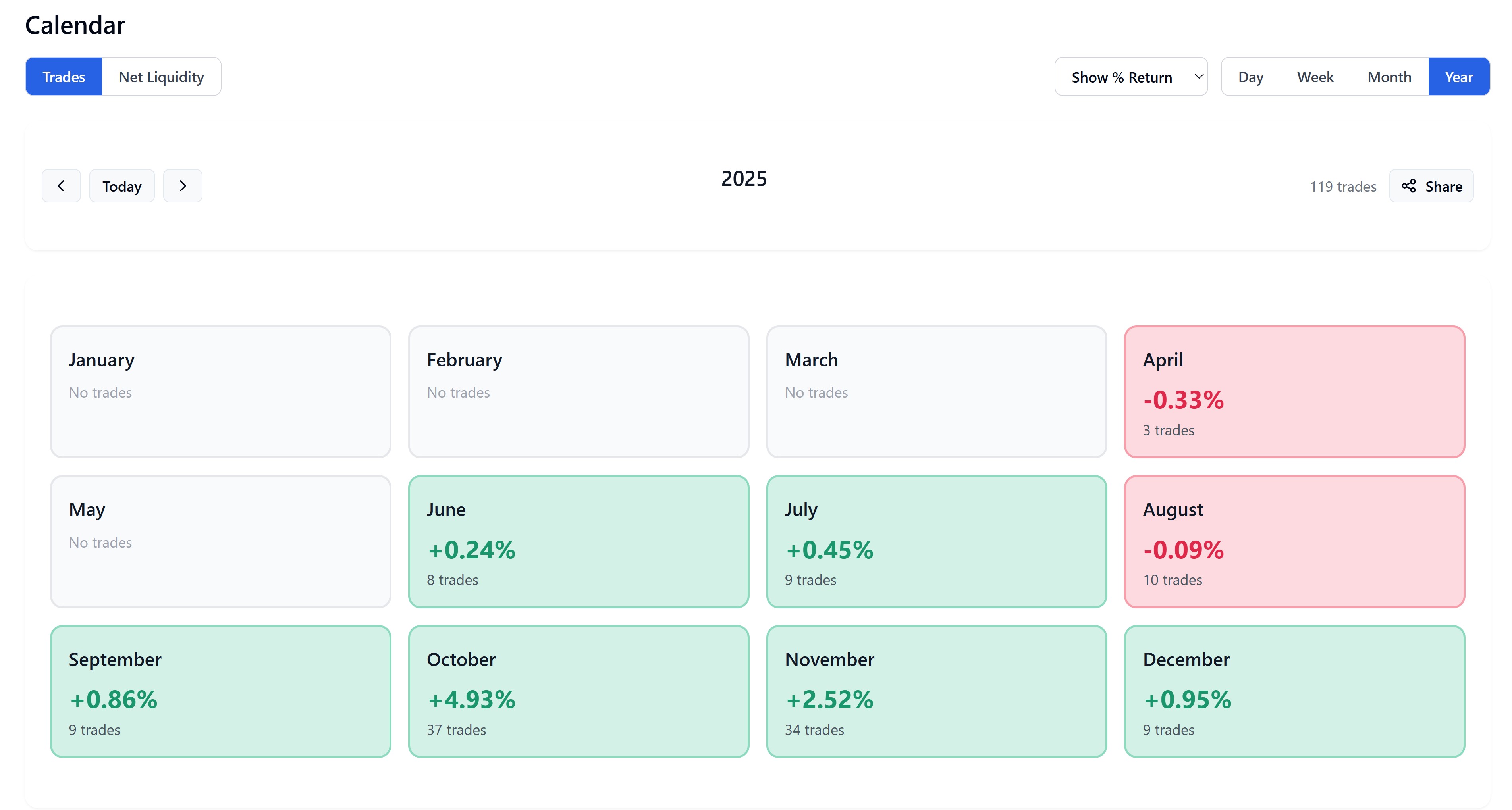 Trading Calendar & Shareable Performance Views